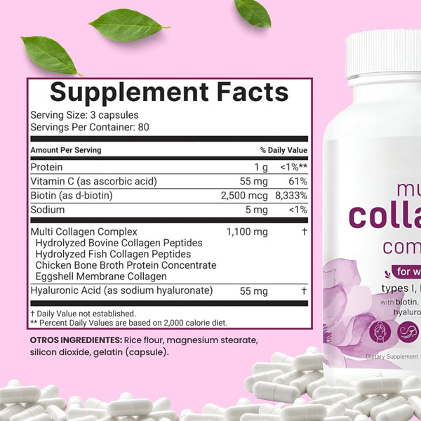 Colágeno Hidrolizado Tipo I, II, III, V y X: Mejora la piel, cabello, uñas y salud articular
