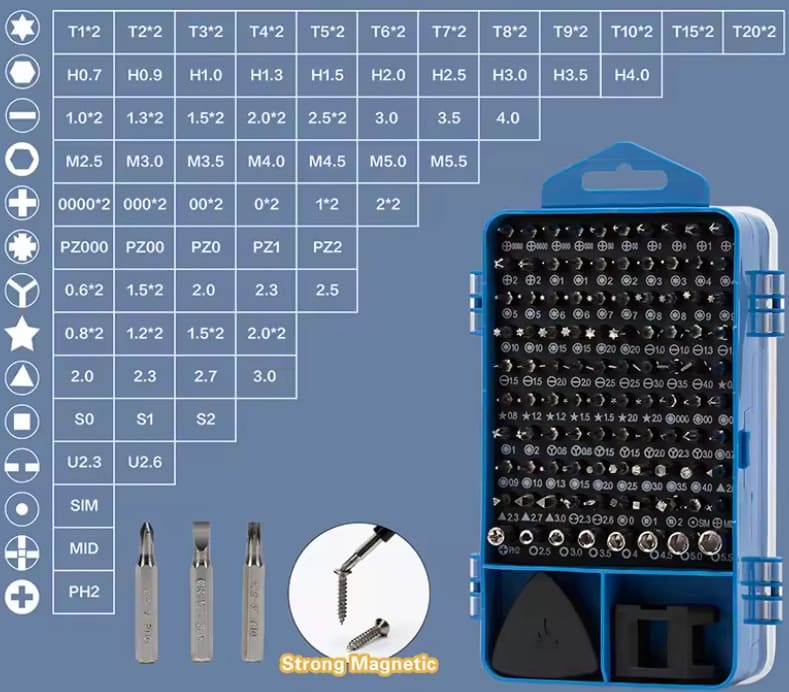 Recibirá 1 kit de 115 destornilladores con todos sus herramientas