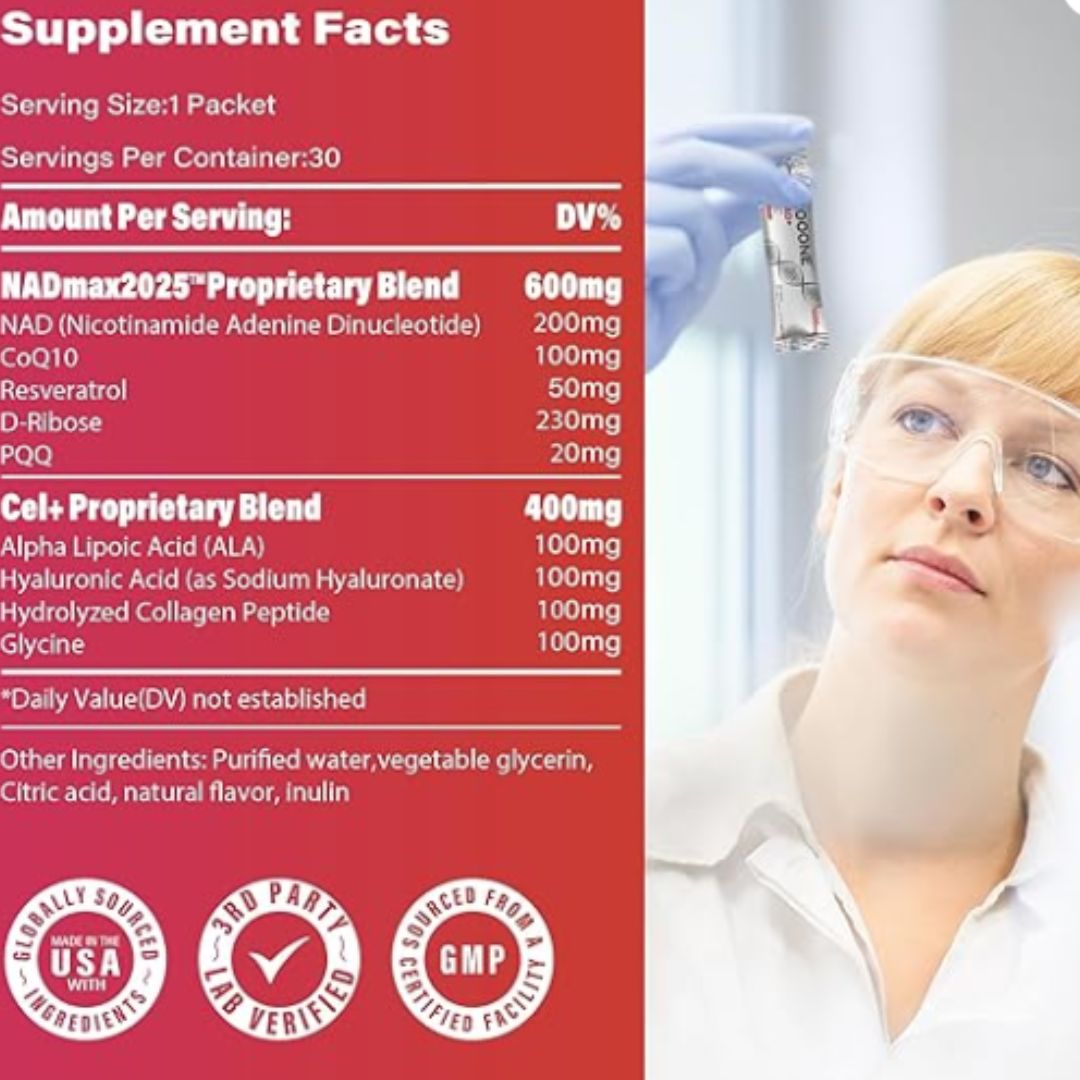 ¡Revitaliza Tu Energía y Activa Tu Vitalidad 🧬 NAD+ 1000 mg con Nicotinamida Ribósido, PQQ y Resveratrol – 30 Sobres ZOONE® Con 60% Descuento🔥