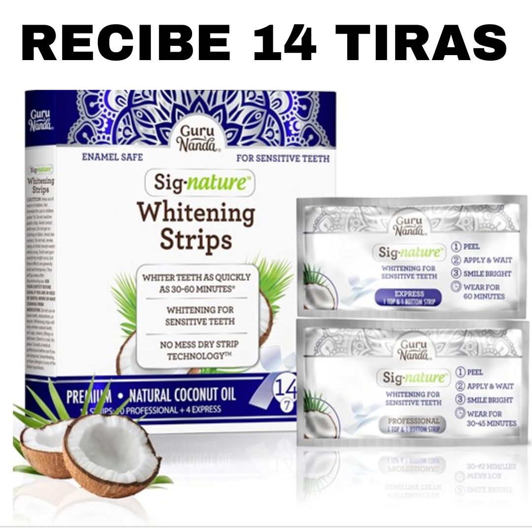 Tiras blanqueadoras dentales GuruNanda® 7 tratamientos en 14 tiras Con 60% Descuento🔥